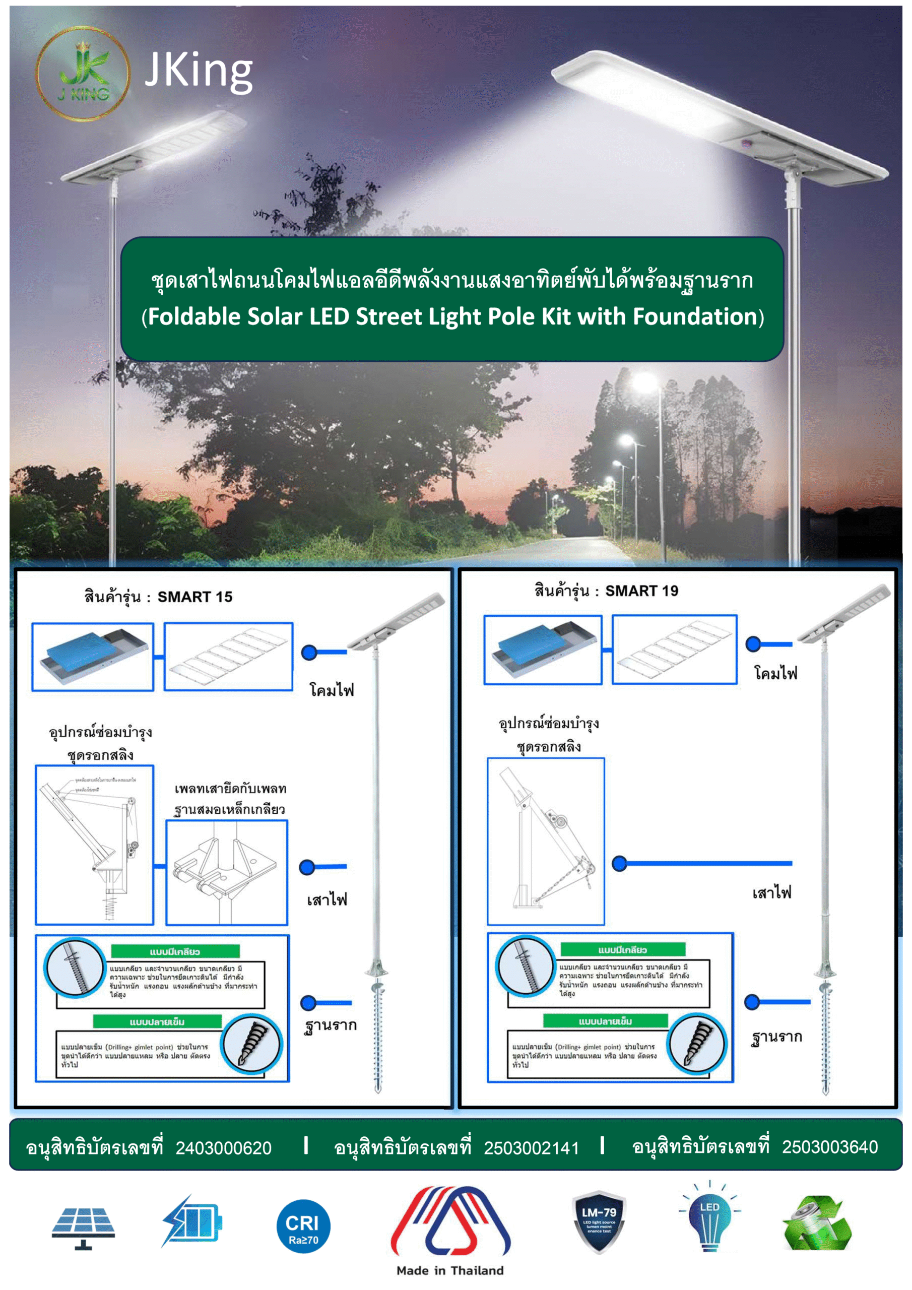 จำหน่ายและติดตั้ง ชุดเสาไฟถนนโคมไฟแอลอีดีพลังงานแสงอาทิตย์ เสาไฟฟ้า ฐานราก มีประสบการณ์มากกว่า 10 ปี ส่งงานครบ ตรงเวลา ไม่ทิ้งงาน รับออกแบบและผลิตโคมไฟพลังงานแสงอาทิตย์ เสาไฟ ฐานราก ตามที่ลูกค้าต้องการ สินค้ามีคุณภาพ มีรับประกันหลังการขาย